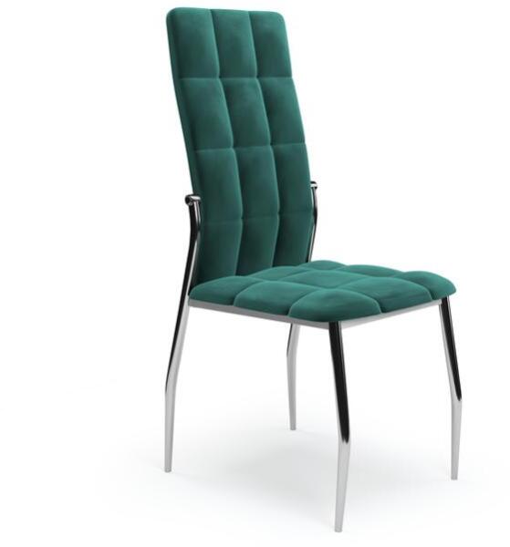 K416 szék, zöld Elegáns megjelenésű, modern kialakítású étkezőszék. Az ülőfelület zöld színű szövettel bevont, a lábak krómból készültek. Méretek: Szélesség: 43 cm Mélység: 54 cm Magasság: 101 cm Ülőfelület magassága: 47 cm Terhelhetőség: 100 kg A terméket lapraszerelten szállítjuk! - Mindigbútor