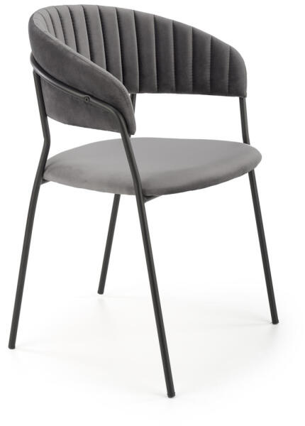 K426 étkezőszék szürke Méretek: 57/54/79/48 cm Anyaga: bársonyszövet / porszórt acél Színe: hamu