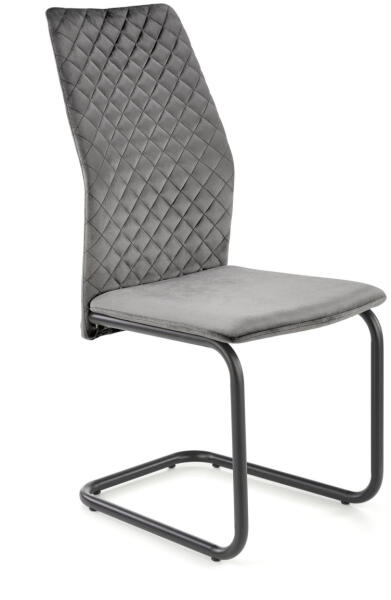 K444 étkezőszék szürke Méretek: 44/54/97/46 cm Anyaga: bársonyszövet / porszórt acél Színe: hamu