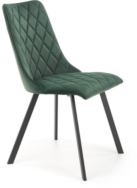 K450 étkezőszék zöld Méretek: 44/58/85/47 cm Anyaga: bársonyszövet / porszórt acél Szín: sötétzöld