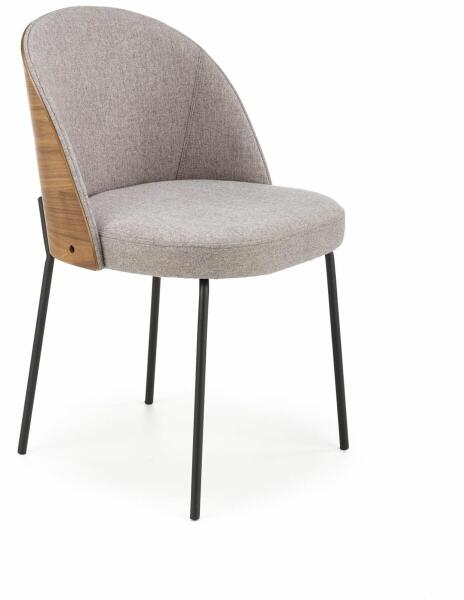 Szobák > Konyhabútor, étkezőbútor > Étkezőszék - K451 étkezőszék szürke/dió Méretek: 52/53/81/48 cm Anyaga: szövet / rétegelt lemez hajlított + természetes furnér / porszórt acél Szín: hamu - világos dió