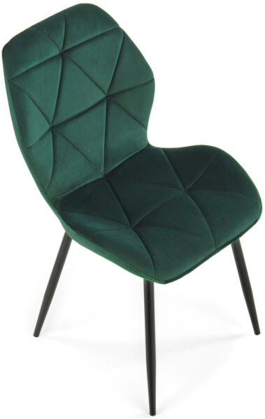 K453 étkezőszék zöld Méretek: 48/53/86/50 cm Anyaga: bársonyszövet / porszórt acél Síne: sötétzöld