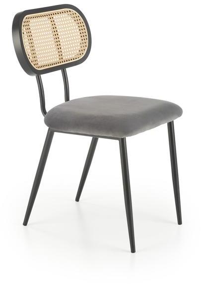K503 szék, szürke Méretek: 53/60/84/49 cm Anyaga: tömörgumi fa / szintetikus rattan / bársonyszövet / porszórt acél Szín: szürke - Mindigbútor