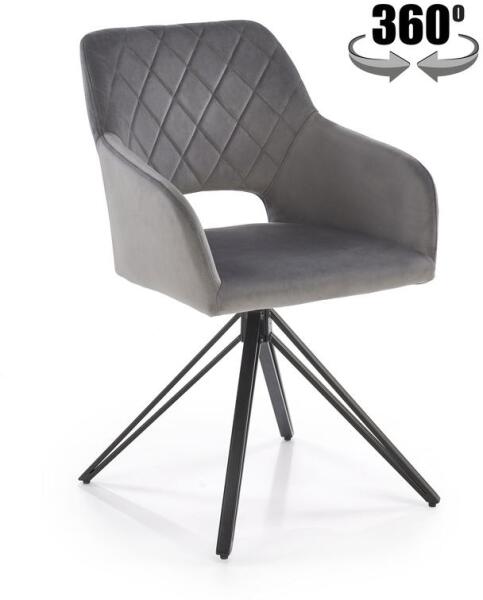 K535 szék, szürke  Méretek: 57/60/86/50 cm Forgó funkció 360 Anyaga: bársony szövet - KÉK / porszórt acél Szín: szürke BLUVEL#14 - Mindigbútor