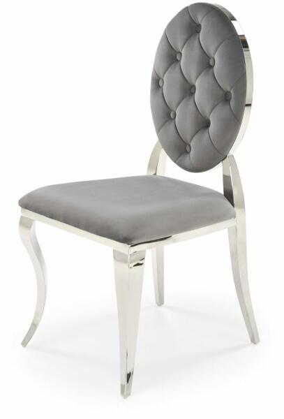 Szobák > Konyhabútor, étkezőbútor > Étkezőszék - K555 szék, szürke/ezüst Méret: 48/52/96/46 cm Anyaga: bársony kendő - KÉK / rozsdamentes acél Színek: szürke BLUVEL#14 / ezüst