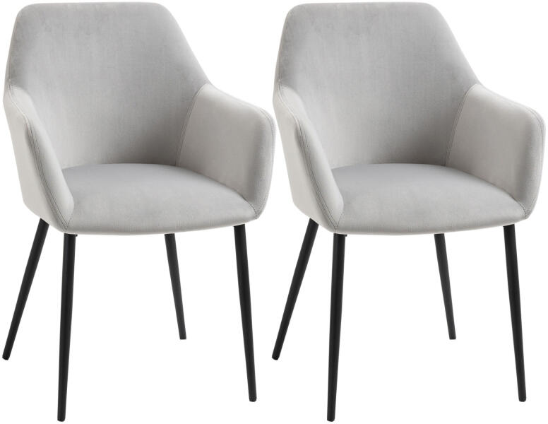 HomCom 2 db-os étkezőszék szett, dekoratív bársony szövet, világos szürke