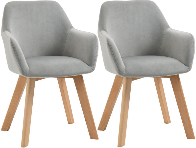 HomCom 2 db-os szék szett fa lábakkal, szürke
