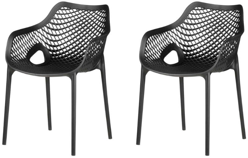 2 darabos Intenso D980C univerzális étkező szék készlet, ami tökéletes választás bel-és kültéri használatra egyaránt. A legújabb lakberendezési trendekkel összhangban, mozgalmas textúra és formavilág jellemzi, ugyanakkor rendkívül ergonómikus üléspozíciót és a test optimális megtámasztását kínálja. Anyaga magas minőségű polipropilén, nagy ellenálló képességgel az UV sugárzással és nedves környezettel szemben is. Kellemes tapintású, enyhén selyemfényű fekete felület, 4 darabos magasságig egymásba illeszthető kialakítás. Szélesség: 57 cm