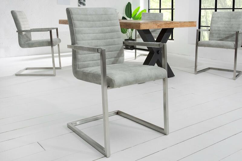 Ergonomikus kialakításának, vastag, puhára párnázott ülőrészének és karfájának köszönhetően igazán kényelmes. Az ülést kellemes tapintású szürke mikroszálas anyag fedi, mely a háttámlán vízszintesen sávozott. U alakú krómozott lábai és karfája, mely a háttámlát is körülöleli, remekül egészítik ki a koncepciót. Visszafogott stílusának köszönhetően, mind modern minimalista étkezőkbe és konyhákba, mind irodákba és tárgyalókba egyaránt jól mutat.