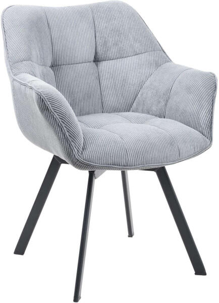 Jordi Kord Bársony Étkezőszék: Modern Kényelem és Stílus ✨ Ez a forgatható Jordi étkezőszék tökéletesen ötvözi a modern dizájnt a kényelemmel. A puha kord bársony kárpitozás és a párnázott ülés, háttámla és karfa garantálja a kényelmes ülést akár órákon át is. A 4 lábú fémváz stabil és elegáns, a padlóvédők pedig megóvják a padlót a karcolásoktól. Főbb jellemzők:Kényelmes kord bársony kárpitozás: Puha, kellemes tapintású és könnyen tisztítható. Forgatható ülés: 180 fokos elforgathatóság extra mozgásszabadságot biztosít. Stabil fémváz: Tartós és modern megjelenésű. Padlóvédők: Megóvják a padlót a karcolásoktól. Méretek: Teljes magasság: 81 cm Teljes szélesség: 60 cm Teljes mélység: 59 cm Ülésmagasság: 47,5 cm Ülőfelület: 36 x 43,5 cm Háttámla magassága: 38 cm Karfa magassága: 61 cmMax. terhelhetőség: 150 kg Könnyű tisztítás: Nedves ruhával könnyen tisztítható a felület. A porszívózás csak megfelelő rögzítéssel javasolt. Modern és stílusos: A Jordi étkezőszék tökéletesen illeszkedik bármely étkezőbe, hozzájárulva a modern és elegáns megjelenéshez. Kiváló választás otthonába, vagy akár vendéglátóhelyekre is.