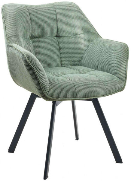 Jordi Kord Bársony Étkezőszék: Modern Kényelem és Stílus ✨ Ez a forgatható étkezőszék tökéletes választás, ha modern és kényelmes bútorra vágysz. A puha kord bársony kárpitozás és a párnázott ülés, háttámla és karfa garantálja a maximális kényelmet, akár órákon át is. A fekete fémváz elegáns kontrasztot képez a zöld kord bársonnyal, stílusos megjelenést kölcsönözve a széknek. Főbb jellemzők:Kényelmes ülés: Párnázott ülés, háttámla és karfa a maximális komfortért ☁️ Forgatható: 180 fokos elforgatási funkció a nagyobb mozgásszabadságért ? Tartós anyag: 100% poliészter kord bársony huzat, könnyen tisztítható ? Stabil váz: Robusztus, négylábú fémváz a biztonságos használatért ? Modern design: Stílusos megjelenés, amely bármilyen étkezőbe illeszkedik ? Nagy teherbírás: 150 kg-ig terhelhető ?️‍♀️ Méretek:Méret Méret (cm)Teljes magasság 81Teljes szélesség 60Teljes mélység 59Ülésmagasság 47,5Ülőfelület 36 x 43,5Háttámla mag. 38Karfa magasság 61Tisztítás: Nedves ruhával törölje le az enyhe szennyeződéseket. Porszívózással tisztítható (csak megfelelő rögzítéssel). Ne használjon háztartási tisztítószereket.