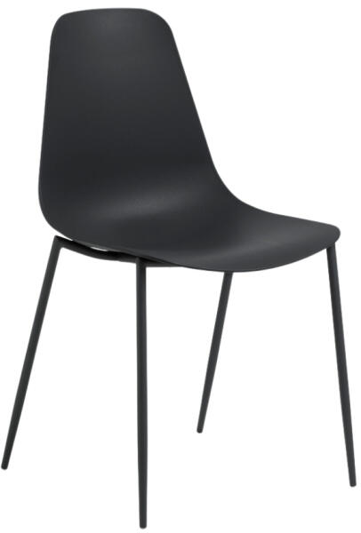 A Kave Home Whatts étkezőszék tökéletes dizájnelem lesz minden családi étkezéshez. Az alap fekete lakkozott acélból készült, és a tömör műanyagból készült fekete ülőlappal és háttámlával együtt modern és minimalista megjelenést kölcsönöz. Alkalmas sötét étkezőasztalokhoz és modern belső terekhez.