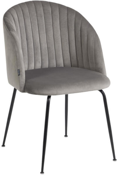 Stílus Kave Home Lumina étkezőszék megkapja a tekintetét első látásra mindenekelőtt magas komfortos és érdekesen formázott ülésével. A Lumina étkezőszék világosszürke színű, puha bársonnyal kárpitozott, és steppelt függőleges csíkokkal van ellátva a háttámlán. A fekete lakkozott acél talp elegáns megjelenést kölcsönöz az egésznek. A Kave Home Lumina étkezőszék mind a modern, mind a klasszikus étkezőszékeket megfelelően kiegészíti. ebédlő, amelybe egy leheletnyi  modern eleganciát és időtlen stílust hoz.
