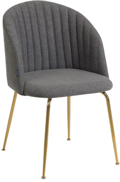 Stílusos Lumina étkezőszék a LaForma márkától elegáns kialakításával nyűgöz le. A kellemes , világosszürke szövetkárpitozás vonzó kontrasztot alkot az aranyszínűre lakkozott fém talppal, ami ezt a széket újszerű bútordarabbá teszi. A kárpitozott háttámlát stílusos, függőleges csíkok formájú steppelés egészíti ki. A Lumina szék mind a klasszikus, mind a modern enteriőrökben nagyszerű helyet foglal el.