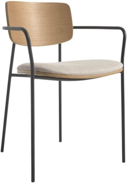 Design étkezőszék Kave Home Maureen tökéletes keveréke a modern a természetes tervezés. Kellemes bézs színű szövet kárpitozott ülés , barna tölgyfa furnérral borított háttámla a Fekete a fém talapzat olyan kapcsolatot teremt, amely ezt a széket abszolút győztessé teszi a között egyedülálló. A szövet foltmentesítéssel van ellátva. A szék illeszkedik a modern, de akár retro belső terek otthonában, valamint éttermekben vagy kávézókban.