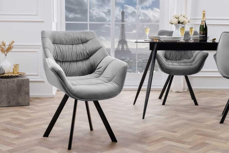 A Kiara szék retró stílusú extra vastag üléskárpitozással és háttámlával rendelkezik. Az időtlen és divatos kialakításának köszönhetően könnyen kombinálható másfajta bútorokkal, kiegészítőkkel és különféle stílusú belső terekbe illik. A fekete fém lábak tökéletesen kiegészítik a szürke ülőrész kárpitozást. Az egyedi kinézetet a háttámlán lévő dekoratív varrás biztosítja. A minőségi masszív párnázásnak és a kényelmes kárpitozott kéztámlának köszönhetően a szék nagyon kényelmes.