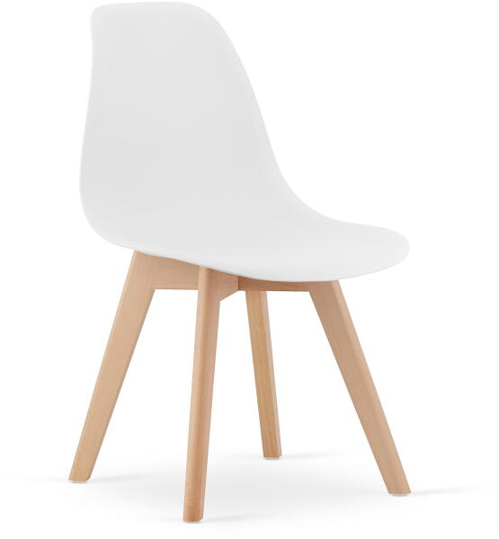 Az ülőfelület ergonomikusan formázott műanyagból készült, amely nemcsak esztétikus, hanem kényelmes is. A szék lábai világos fa hatásúak,  stabilak és elegáns kontrasztot alkotnak az ülőfelület színével. A természetes fa időtlen megjelenést kölcsönöz a széknek, így tökéletes választás lehet étkezőbe, irodába vagy akár nappaliba is.  Könnyen tisztán tartható.