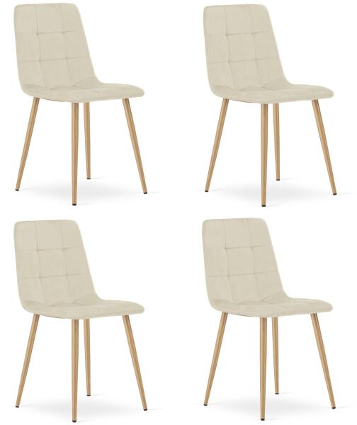 Krzesło KARA - jasny beż aksamit / nogi kolor drewna x 4
