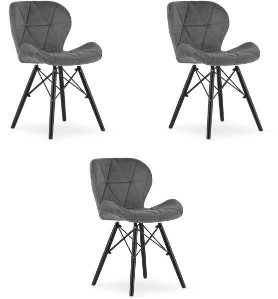 LAGO Bársonyszék - szürke / fekete lábak x 3