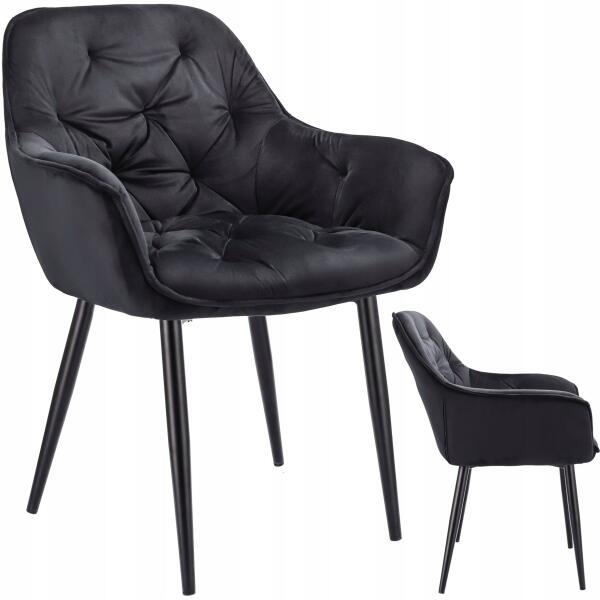 LARGO fekete bársony szék: Elegáns kényelem otthonodba ? A LARGO fekete bársony szék a klasszikus stílus és a modern kényelem tökéletes ötvözete. Ez a masszív, mégis elegáns karosszék puha bársony kárpitozásával és díszes steppelésével azonnal magával ragad. A karcsú, fekete fém lábak nem csak stabilitást biztosítanak, hanem légies megjelenést is kölcsönöznek a széknek. Miért válaszd a LARGO széket?Kényelmes kialakítás: A magas háttámla és a karfák tökéletes támaszt nyújtanak, így hosszú órákon át is kényelmesen ülhetsz. Elegáns megjelenés: A bársony kárpitozás és a díszes steppelés luxus hatást kölcsönöz a széknek, amely bármelyik helyiség éke lehet. Stabilitás és tartósság: A masszív szerkezet és a fém lábak garantálják a szék hosszú élettartamát. Termékjellemzők:Szín: Fekete Kárpitozás: Bársony Lábak: Fém Maximális terhelhetőség: 120 kg Méretek:Méret ÉrtékMagasság 82 cmSzélesség 60 cmMélység 62 cmÜlésmagasság 48 cmÜlésszélesség 43 cmÜlésmélység 42 cmÉlvezd a kényelmet és az eleganciát a LARGO fekete bársony székkel! ✨