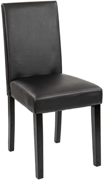 Kelly bőr étkezőszék fekete színben Tedd környezeted praktikusabbá és komfortosabbá a Kelly székkel! Az étkezők és közösségi terek gyakran nemcsak vizuális szempontból, de kényelmi szinten is alulmaradnak. A régi székek kényelmetlenek, a lábaik nyikorognak, és nehezen illeszkednek a modern környezetbe, legyen szó otthonokról vagy vendéglátóipari egységekről. A Kelly szék mérete 42x58x90 cm, maximális teherbírása pedig 120 kg, így kiváló választás akár otthoni, akár közületi használatra. Senki sem akar olyan széket használni, amely kemény, instabil, vagy folyamatos tisztítást igényel. Minden ülés élvezetesebb a Kelly székkel A Kelly szék olyan megoldást kínál, amely a mindennapi használatot egyszerűbbé és élvezetesebbé teszi. Az ülőfelület 4 cm vastag habszivacs párnája biztosítja, hogy hosszú időn át kényelmesen ülhess, akár egy családi vacsora, akár egy mozgalmas éttermi vacsora során. A fekete szín visszafogott, mégis karakteres megjelenést kölcsönöz, amely harmonikusan illeszkedik bármilyen enteriőrbe, legyen az egy otthoni étkező, kávézó, vagy épp egy rendezvényhelyszín. Nemcsak a te kényelmedet szolgálja, hanem a környezetet is A Kelly szék gyártása során újrahasznosított habszivacsot használnak, amely csökkenti a környezeti terhelést. A fenyőfa lábak természetes stabilitást és tartósságot biztosítanak, így ideális választás mind otthoni, mind közületi hosszútávú használatra. Műbőr borítás, ami könnyen tisztítható A műbőr borítás nemcsak esztétikus, de rendkívül praktikus is. Tisztítása egyszerű: egy nedves ronggyal gyorsan letörölhető, így tökéletes választás olyan helyekre is, ahol a székek intenzív használatnak vannak kitéve, például éttermekbe vagy kávézókba. A 4 cm vastag habszivacs ülőfelület ergonomikus kialakítású, így támogatja a gerincet, csökkentve a hosszabb ülések okozta terhelést. Egyszerű összeszerelés és praktikus csomagolás A Kelly szék két darabos csomagolásban érkezik, amely megkönnyíti a berendezési folyamatot, legyen szó étkezők bővítéséről vagy új helyiségek berendezéséről. Az összeszerelése gyors és egyszerű, nem igényel speciális eszközöket. Sokoldalú megoldás minden térbe A Kelly bőr étkezőszéket olyan felhasználóknak ajánljuk, akiknek fontos a tartósság, a könnyű tisztíthatóság és a kényelmes kialakítás: