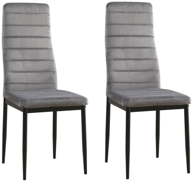 Modern, de mégis elegáns megjelenésű, fémvázas, textil kárpitozású, magas háttámlás étkezőszék. Kiválóan illik háztartásokba és irodákba egyaránt. 2 Darabos