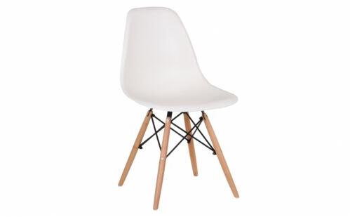 Kényelmes műanyag ülőfelületű és háttámlájú szék, melynek fa lábai fém vázas erősítést kaptak, így kellő képen masszívak.