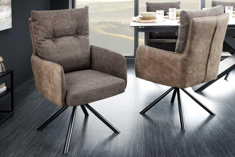 A lenyűgöző Maddison forgószék jellegzetes kartámaszaival bármilyen helynek tökéletes dísze lesz. Egyedülálló kialakítása két különféle szövetet ötvöz. Az ülés külső részét mikroszálas szövet borítja, belsejében struktúrált szövet található. A háttámlát gombok díszítik, amelyek szolid eleganciát és különleges varázst kölcsönöznek a bútornak. A fekete fém lábak harmonikus összhangot képeznek a szék puha szövettel borított szokatlan kialakításával. Az időtlen és egyszerű formatervezésnek köszönhetően könnyedén kombinálhatja a széket a különböző stílusú bútorokkal és kiegészítőkkel. A forgatható kialakítás lehetővé teszi, hogy minden irányba megforduljon az asztal körül, még ülve is, anélkül, hogy a széket mozgatni kellene. Nem csak a konyhában találja meg alkalmazását, de a dolgozószobában, étkezőben vagy étteremben is elbűvölő lehet.