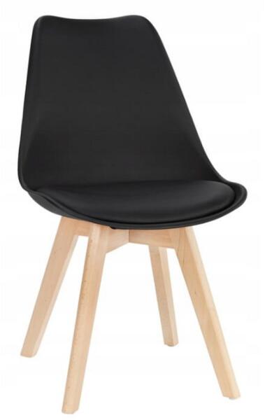 Mossa fekete étkezőszék Skandináv stílusú MOSSA szék - tökéletes felszerelés a nappali és az étkező belsejébe! Az ülés műanyagból, a huzat pedig eco-bőrből készült. A szék talpa és lábai fából készültek. Méretek: