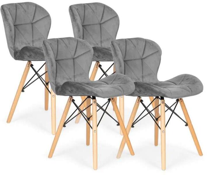 ModernHome bársony étkezőszékek (4 db): Elegáns és kényelmes szürke szék garnitúra Elegáns, modern dizájn és páratlan kényelem jellemzi ezt a 4 darabos szürke bársony étkezőszék készletet. Tökéletes választás modern otthonokba, éttermekbe vagy bárokba. Kényelem és minőség: Kényelmes, formázott háttámla a hosszú étkezésekhez vagy pihenéshez Magas minőségű, puha bársony kárpitozás Tartós bükkfa lábak Padlóvédő lábak a karcolások elkerülésére Modern design: Elegáns, letisztult vonalvezetés Stílusos szürke bársony kárpitozás Tökéletesen illeszkedik minden enteriőrbe Méretek:Tulajdonság MéretMagasság 72 cmSzélesség 43 cmMélység 43 cmÜlőfelület mélysége 38 cmHáttámla magassága 33 cm