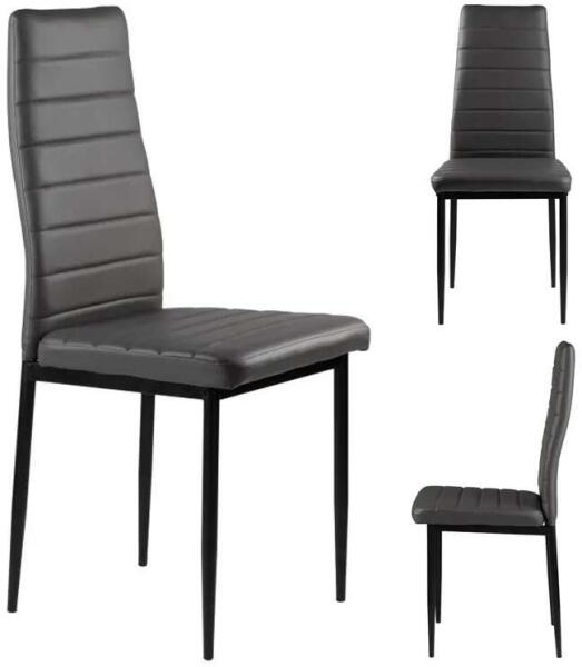 ModernHome Szürke Ökobőr Székek (4 db): Elegáns és Kényelmes Ülőbútor a Nappaliba és Étkezőbe Ez a 4 darabos szürke ökobőr szék készlet tökéletes választás modern otthonába. Kiváló minőségű anyagokból és precíz kivitelezéssel készült, hogy hosszú éveken át szolgálja Önt. A kényelmes, magas háttámla és a puha töltelék garantálja a pihentető ülést. A fekete fém lábak elegáns kontrasztot alkotnak a szürke kárpitozással, modern és stílusos megjelenést kölcsönözve a bútornak. Főbb jellemzők: 4 darab szürke ökobőr szék Magas, kontúros háttámla a maximális kényelemért ?‍♀️ Puha, kiváló minőségű PU hab töltelék Tartós, porszórt fekete fém lábak Akár 120 kg-os terhelhetőség ? Könnyen tisztítható ökobőr kárpitozás Védő lábak a padló karcolásának elkerülésére ?️ Méretek:Tulajdonság MéretMagasság 98 cmSzélesség 43 cmMélység 41 cmTökéletes választás: Étkezőbe Nappaliba Irodába Bárokba Éttermekbe ModernHome minőség – Tartósság és elegancia egyben!