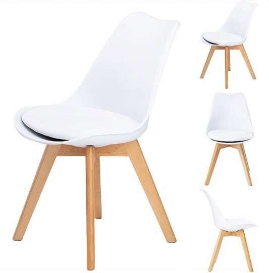 ModernHome Venice étkezőszékek 4 db-os szett: Elegáns és kényelmes otthonodba ? Élvezd a stílus és kényelem tökéletes harmóniáját a ModernHome Venice étkezőszékekkel! Ez a 4 db-os szett ideális választás modern és klasszikus otthonokba egyaránt. A skandináv dizájnnak köszönhetően bármilyen enteriőrbe könnyedén illeszkednek. Kiemelt jellemzők:Kényelmes ülés: Hosszú órákon át is kényelmesen üldögélhetsz a puha ökobőr párnákkal. Modern design: A letisztult formavilág és a világos színvilág eleganciát sugároz. Stabil fa lábak: A masszív bükkfa lábak biztosítják a székek stabilitását és tartósságát. Könnyű összeszerelés: Mindössze 10 perc alatt összeszerelheted a székeket. Nagy teherbírás: Minden szék akár 120 kg-ot is elbír. Tökéletes illeszkedés: A fehér ökobőr párna tökéletesen harmonizál a fehér székekkel. Méretek:Méret Méret (cm)Teljes magasság 82Szélesség 50Mélység 50Ülőrész mélység 42Ülőrész szélesség 48Ülőmagasság 46Háttámla magasság 40Háttámla szélesség(legnagyobb) 48Háttámla szélesség(tetején) 30Mitől különlegesek a ModernHome Venice székek? Stílusosak, kényelmesek és tartósak. Tökéletes választás étkeződbe, konyhába vagy akár irodádba is. Frissítsd fel otthonod hangulatát ezzel a gyönyörű szettel!