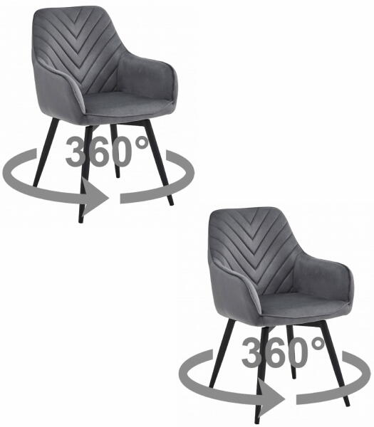 Elegáns, forgó bársony szék szett - Sötétszürke kényelem és stílus ? Ez a 2 darabos, sötétszürke bársony szék szett tökéletes választás, ha egy kis eleganciát és kényelmet szeretnél vinni otthonodba. A 360°-ban forgatható ülésnek köszönhetően rendkívül praktikus és sokoldalú. Főbb jellemzők:Elegáns megjelenés: A bársony kárpit és a fekete lábak kombinációja stílusos megjelenést kölcsönöz a széknek. Kényelmes ülés: A puha bársony és a karfák biztosítják a kényelmes ülést hosszabb időn keresztül is. 360°-ban forgatható: A teljesen forgatható ülés lehetővé teszi a könnyű mozgást és a különböző irányokba való tájékozódást. Könnyen tisztítható: A bársony anyag ellenáll a szennyeződéseknek, így könnyen tisztán tartható. Egyszerű összeszerelés: A szék gyorsan és egyszerűen összeszerelhető, így nem kell szakember segítségét kérned. Sokoldalú felhasználás: Tökéletes választás nappaliba, konyhába, étkezőbe vagy dolgozószobába. Termék specifikációk:Jellemző ÉrtékKárpit anyaga Kiváló minőségű velúr szövet (bársony)Kárpit színe SötétszürkeLáb anyaga Fém, porszórt feketeMaximális terhelhetőség 110 kgSúly kb. 6,7 kgMéretek (+/- 1 cm): Teljes magasság: 83,5 cm Karfa magassága: 62 cm Ülésmagasság: 48 cm Teljes szélesség: 56 cm Ülésszélesség: 40 cm Teljes mélység: 61 cm Ülésmélység: 45 cm Ez a szék szett nem csak kényelmes és praktikus, de stílusos kiegészítője is lehet otthonodnak. A sötétszürke bársony és a fekete lábak elegáns kombinációja bármilyen enteriőrbe tökéletesen illeszkedik. ✨