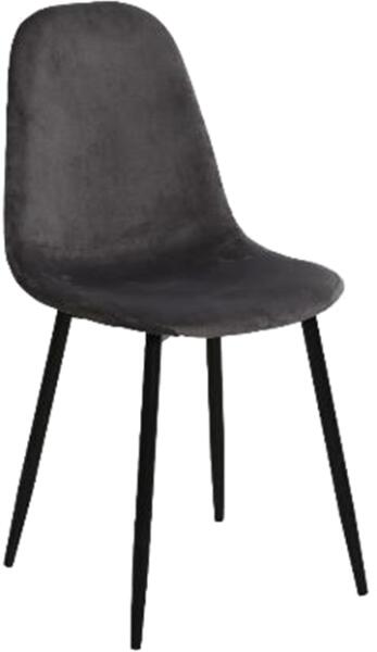 Szürke színű étkezőszék bársony ülőfelülettel, fekete fém lábakkal.