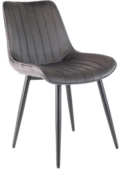 Rowena étkezőszékVigyen egy kis időtlen eleganciát nappalijába, kávézójába vagy céges konyhájába – a bársonyutánzat otthonossá teszi a teljes belső teret. A Rowena étkezőszék feketefém lábakon áll, amelyeket az ülés alatti keresztszerkezet szorosan összeköt. Ennek köszönhetően a szék 120 kg-os terhelést is elbír. A lábaknak praktikusvégei vannak, amelyek alkalmazkodnak a padlón lévő kisebb egyenetlenségekhez. Rowena szék méreteiMagasság x szélesség x mélység: 84 x 52 x 59 cmÜleő magasság: 49 cmHáttámla magassága: 35 cmÜlés méretei: 52 x 42 cm li> ul> Elegáns étkezőszék, Rowena