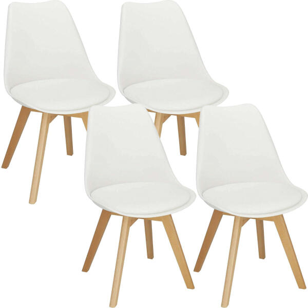 4 db Elegáns Étkezőszék Készlet: Modern Skandináv Design ? Ez a 4 db-os étkezőszék készlet tökéletes választás modern és elegáns otthonokba. A fehér ökobőr kárpitozású ülés és a világos fa lábak stílusos kombinációja bármilyen étkezőbe vagy konyhába remekül illeszkedik. Kényelmesek és könnyen tisztíthatók, így hosszú éveken át örömmel fogjátok használni. Főbb jellemzők:Anyag: PP / fa / ökobőr Szín: Fehér/barna Maximális terhelhetőség: 125 kg Kényelmes, kárpitozott ülés: Puha párnával a fokozott komfortért ☁️ Ergonomikus forma: Kényelmes ülés hosszú órákon át is ?‍♀️ Könnyen összeszerelhető: Minden szükséges elem a csomagban található ?️ Könnyen tisztítható: A fehér ökobőr könnyen ápolható ✨ Modern skandináv design: Stílusos és időtálló darabok a lakásba ? Méretek: Teljes magasság: kb. 82 cm Ülésszélesség: 44,5 cm Ülésmélység: 41 cm Magasság a talajtól az ülésig: 46,5 cmVédő lábvégek: Megóvják a padlót a karcolásoktól ?️ Miért válaszd ezt a készletet? Ez a készlet kiváló ár-érték arányt kínál, és tökéletes választás azoknak, akik stílusos, kényelmes és tartós étkezőszékeket keresnek. A modern skandináv design bármilyen enteriőrbe illeszkedik, és a könnyű tisztíthatóságnak köszönhetően hosszú éveken át élvezhetitek majd a székek kényelmét.