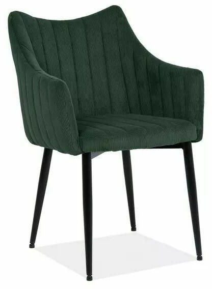 Elegáns bordázott kárpitozású étkezőszék, amely ötvözi a modern dizájnt és a kényelmet. A zöld kordszövet és a matt fekete fémváz tökéletes összhangot teremt, miközben a karfás kialakítás extra kényelmet biztosít. Elegáns kényelem modern stílusban A Monte étkezőszék a modern design és a kényelem tökéletes ötvözete. A bordázott zöld kordbársony kárpitozás különleges megjelenést kölcsönöz, míg a matt fekete fémváz stabil alapot biztosít. A szék 87 cm magas, 59 cm széles és 46 cm mély, ideális méretekkel rendelkezik az étkezőasztal mellé. Ez a szék tökéletesen ötvözi a funkcionalitást és a stílust. A karfás kialakítás extra kényelmet nyújt, míg a bordázott kárpitozás elegáns megjelenést biztosít. Előnyök Ergonomikus kialakítás a maximális kényelemért Strapabíró kordbársony kárpitozás könnyű tisztíthatósággal Modern design, amely bármilyen étkezőbe illeszkedikFőbb tulajdonságokTeherbírás: Akár 120 kg-ig terhelhető, stabil használatot biztosítvaÜlésmagasság: 50 cm-es magasság az optimális ülőpozícióértAnyaghasználat: Prémium minőségű kordbársony és tartós fémváz kombinációjaTechnikai adatok Méretek (Sz x Mé x Ma)59 x 46 x 87 cmÜlésmagasság50 cmKárpit anyagaKordszövetVáz anyagaMatt fekete fémTerhelhetőség120 kgSzerezze be most ezt az elegáns és kényelmes étkezőszéket otthonába!