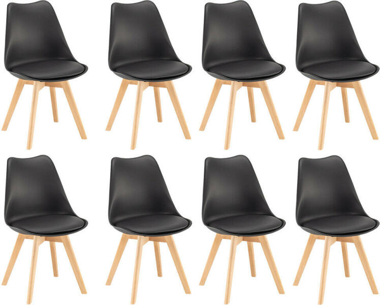 Silla Étkezőszék Szett (8 db) - Stílus és Kényelem Egyben! ? Varázsold át étkeződet a Silla étkezőszék szettel! Ez a 8 darabos szett tökéletes választás, ha modern eleganciát és kényelmes ülőalkalmatosságot keresel. Főbb Jellemzők:Modern Design: Letisztult vonalvezetés, amely bármilyen enteriőrbe illeszkedik. Kényelmes Ülés: PVC szintetikus textil párnázat a maximális komfortért. Tartós Anyagok: Polipropilén ülőfelület és bükk színű fa lábak a hosszú élettartamért. Praktikus: Könnyen tisztítható felületek a mindennapi használatra. Termékadatok:Jellemző ÉrtékSzín FeketeÜlőfelület anyaga Polipropilén (PP)Párnázat anyaga PVC szintetikus textilLábak anyaga Bükk színű faMagasság 81 cmSzélesség 49 cmÜlésmélység 43 cmÜlőmagasság 45 cmTeherbírás 180 kgKiszerelés 8 darab székMiért válaszd a Silla étkezőszéket?Elegáns megjelenés: Dobd fel étkeződ hangulatát egy stílusos szett segítségével. Kényelmes használat: Élvezd a hosszabb étkezéseket a kényelmes párnázásnak köszönhetően. Könnyű tisztíthatóság: A praktikus anyagoknak köszönhetően a székek tisztán tartása gyerekjáték. Stabilitás és tartósság: A masszív fa lábak biztosítják a székek stabilitását és hosszú élettartamát. Tedd teljessé otthonod hangulatát a Silla étkezőszék szettel! ✨