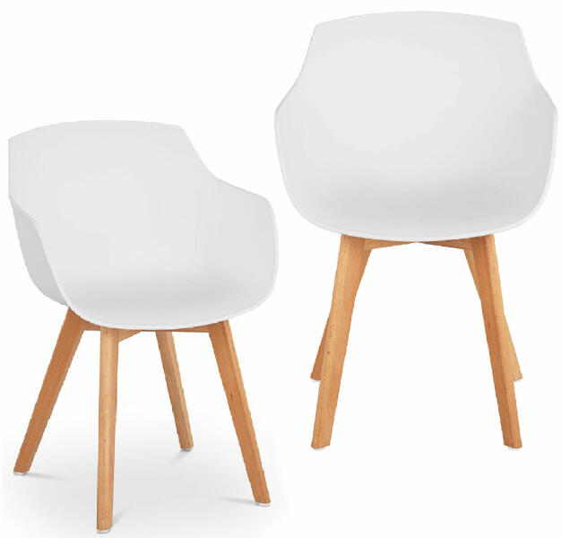 Skandináv stílusú műanyag szék szett (2 db) fa lábakkal - Elegáns és kényelmes megoldás otthonába! ? Ez a 2 darabos szett tökéletes választás étkezőbe, nappaliba vagy akár irodába is. A letisztult skandináv design és a kényelmes, ergonomikus ülőfelület garantálja a stílusos megjelenést és a kellemes használatot. Főbb jellemzők:Skandináv design: Modern és elegáns megjelenés. Ergonomikus ülés: Kényelmes ülőfelület (400 x 410 mm). Tartós anyagok: PP műanyag ülés és bükkfa lábak. Teherbírás: Akár 150 kg-ig terhelhető. Padlóvédelem: A lábak védőburkolattal vannak ellátva, így nem karcolják a padlót. Könnyen tisztítható: A PP műanyag felület egyszerűen tisztítható. Sokoldalú felhasználás: Ideális éttermekbe, bárokba, várótermekbe, szállodákba vagy irodákba. Műszaki adatok:Paraméter ÉrtékModell STAR_SEAT_17Anyag (ülés) PP műanyagAnyag (lábak) BükkfaTeherbírás 150 kgÜlés méretei 400 x 410 mmSzín FehérMéretek (HxSzxM) 47 x 43 x 80 cmSúly (1 szék) 5,1 kgA csomag tartalma: 2 db szék Szerelési tartozékok Használati útmutató