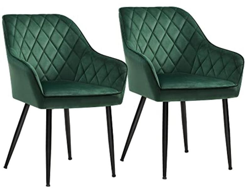 SONGMICS 2 db-os Étkezőszék szett kartámasszal, bársony kárpittal, zöld (LDC088C02)