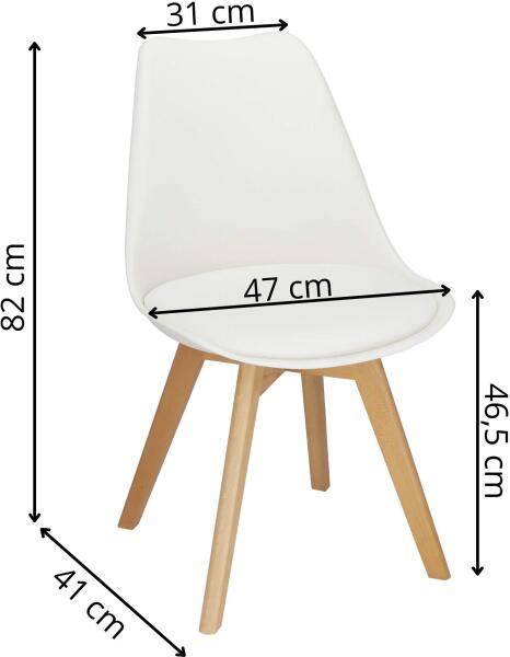 Alapadatok:Márka: Springos®Anyag: PP / fa / ökobőrSzín: fehér / barnaAz ülés kényelmes párnával ellátottMaximális teherbírás: 125 kgTovábbi információk: kárpitozott, puha párna az ülésenMinden alkatrész és szerelési eszköz a készletbenMéretek:Teljes magasság: kb. 82 cmA háttámla magassága: kb. 42 cmA háttámla legszélesebb pontján: 44,5 cmA háttámla legkeskenyebb pontján: 31 cmAz ülés teljes szélessége: 47 cmAz ülőpárna szélessége: 43,5 cmAz ülés mélysége: 41 cmMagasság a talajtól az ülésig: 46,5 cmA lábak szélessége közötti távolság: 34 cmA lábak mélysége közötti távolság: 34 cmA lábak átmérője: 36,5 mmA kárpitozott párna vastagsága: 1,5 cmAz ülés vastagsága: 2,5 cmA méretek tűréshatára 2%További információk:A készletben filc lábvédők alja