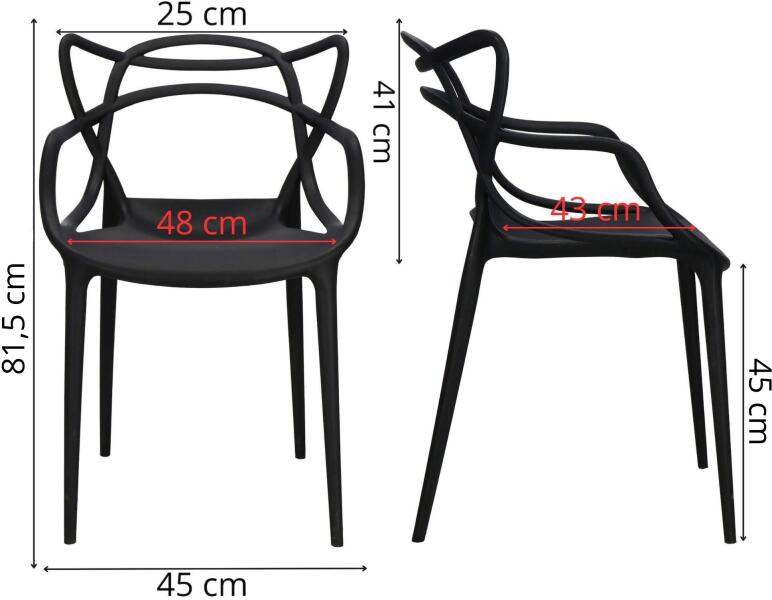 Alapvető adatok:Márka: Springos®Anyag: PPSzín: feketeMaximális teherbírás: 125 kgSzék kültéri használatra is alkalmasMéretek:Teljes magasság: 81,5 cmHáttámla magassága: kb. 41 cmLegszélesebb helyen lévő háttámla szélessége: 52 cmLegszűkebb helyen lévő háttámla szélessége: 25 cmKartámasz hossza: kb. 23 cmKartámasz vastagsága: kb. 2cmÜlés szélessége a legszélesebb helyen: 48 cmÜlés szélessége a legszűkebb helyen: 30 cmÜlés mélysége: 43 cmTalajtól az ülésig mért magasság: 45 cmLábak közötti távolság szélességben: 41 cmLábak közötti távolság mélységben: 50 cmLábak átmérője: 2,1 / 3,3 cmÜlés vastagsága: kb. 3 cmTámla melletti nyílás méretei: 34 x 20 cmKartámasz melletti nyílás méretei: 29 x 13 cmTámlánál kiálló nyílás méretei: 11 x 10 cmSzerkezeti elemek vastagsága a nyílások között: 1 / 1,5 cmTovábbi információk:A méret tolerancia 2%