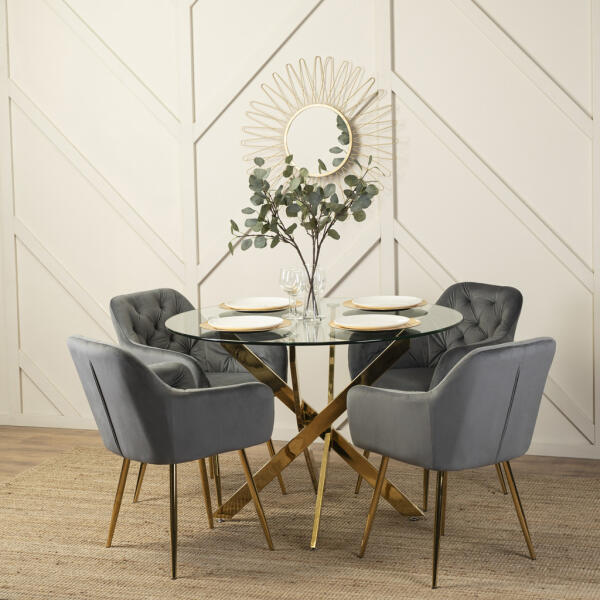 Szürke Bársony Étkezőszék Aranyszínű Lábakkal RAYA (wipMMR0342)