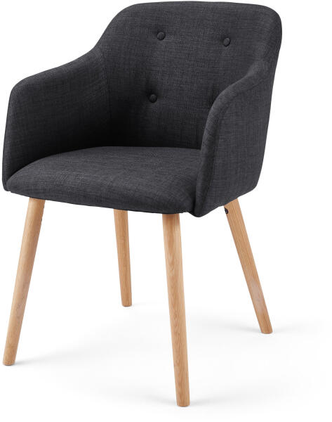 Párnázott szék, antracit Szín: Világosszürke vagy antracit Anyag: Huzat: 100% poliészter Lábak: tömör tölgy Méretek: Ma x szé: 77 x 54 cm Tartalom: Szerelési anyaggal, padlóvédő betétekkel és összeszerelési útmutatóval Egyéb megjegyzések: A terméket szétszerelve szállítjuk! kartámlákkalTömör tölgyfából készült tartószerkezet és lábakKönnyen tisztítható huzat poliészterbőlÜlésmagasság: kb. 47 cm