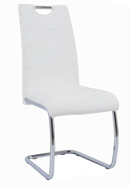 ABIRA NEW étkezőszék - Elegáns kényelem otthonodba! ? Az ABIRA NEW étkezőszék tökéletes választás, ha stílusos és kényelmes ülőalkalmatosságot keresel az étkezőbe vagy a konyhába. A fehér textilbőr és a króm lábak kombinációja modern és letisztult megjelenést kölcsönöz a széknek, amely bármely enteriőrbe könnyen beilleszthető. Főbb jellemzők:Anyag: Minőségi textilbőr és króm Szín: Fehér / Világos varrat Méretek (SzéxMaxH): 43 x 44 x 96 cm Teherbírás: 110 kg Kopásállóság: 100 000 Martindale Miért válaszd az ABIRA NEW étkezőszéket?Modern design: A fehér szín és a króm lábak elegáns megjelenést biztosítanak. Kényelmes ülés: A textilbőr kárpitozás kellemes érzetet nyújt. Tartós anyagok: A magas kopásállóság hosszú élettartamot garantál. ? Könnyű tisztítás: A textilbőr felület egyszerűen tisztítható. ? Stabil szerkezet: A króm lábak biztosítják a szék stabilitását. Az ABIRA NEW étkezőszékkel stílusossá és komfortossá teheted étkeződet! ✨