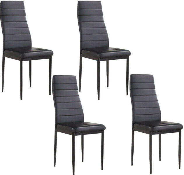 Timeless Tools 4 darabos fekete étkezőszék szett: Elegáns és kényelmes étkezéshez ?️ Ez a 4 darabos fekete étkezőszék szett tökéletes választás modern otthonába. A letisztult, egyszerű dizájn bármilyen stílushoz illeszkedik, a magas háttámla pedig kényelmes ülést biztosít akár hosszabb ideig is. A szilárd fém szerkezetnek köszönhetően rendkívül tartós és strapabíró. Főbb jellemzők:Elegáns, modern dizájn: A minimalista stílusú szék minden enteriőrbe könnyedén beilleszthető. Kényelmes ülés: A magas háttámla és a puha ülőfelület biztosítja a kényelmet. Tartós kivitel: A fém váz rendkívül erős és stabil. Könnyű összeszerelés: A szék gyorsan és egyszerűen összeszerelhető. Tökéletes sokoldalúság: Konyhába, étkezőbe, nappaliba vagy irodába egyaránt alkalmas. Méretek:Jellemző Méret (cm)Ülőfelület 38x38Ülés magassága 43Háttámla magassága 53,5Háttámla szélessége 33Teljes magasság 96,5A vásárlók véleménye alapján: A termék kiváló ár-érték arányú, és a szállítás is rendben zajlott. A szék sérülésmentesen, a képeknek megfelelően érkezett meg. Ne habozzon, rendelje meg most ezt a stílusos és kényelmes étkezőszék szettet!