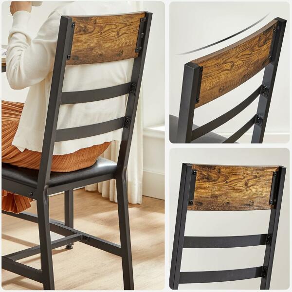 VASAGLE Párnázott étkezőszékek, 2 db konyhaszék szett, rusztikus barna és fekete (LDC095B01) - pepita