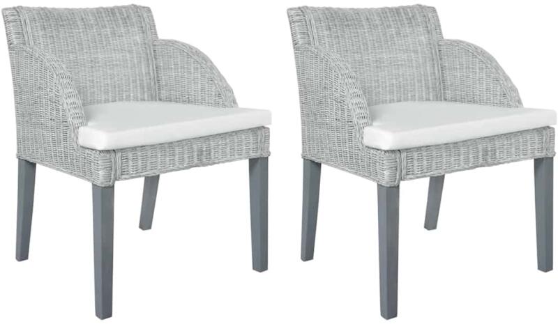 vidaXL 2 db szürke természetes rattan étkezőszék párnával (325488)