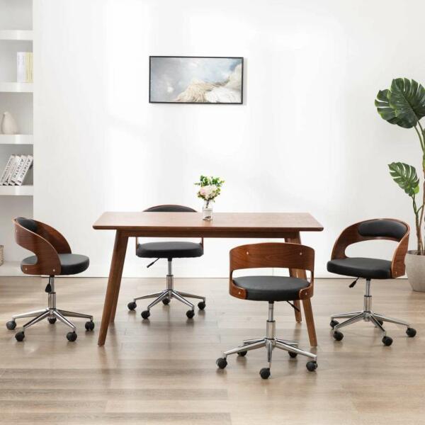 4 db fekete hajlított fa és műbőr forgó étkezőszék