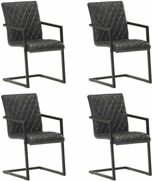 4 db fekete valódi bőr szánkótalpas étkezőszék
